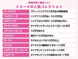 「ショーメの指輪の買取価格を知りたい」「ショーメの時計は売れる?」 自宅にある指輪や時計などのジュエリーを売る際には、買取相場を理解した上で、できるだけ高値になるように工夫することが大切です。...