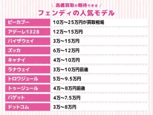 イタリアを代表するファッションブランドであるフェンディ。買取に出そうか悩んでいる人の中には、どのアイテムがどれくらいで買い取ってもらえるのか気になる人は多いのではないでしょうか。 フェンディは...