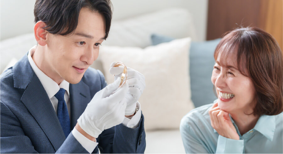 金・プラチナをはじめ、ダイヤモンド、エメラルド、ルビーなどのジュエリーも宝石部分まで細かく鑑定し、最新の相場価格に合わせて買い受けいたします。