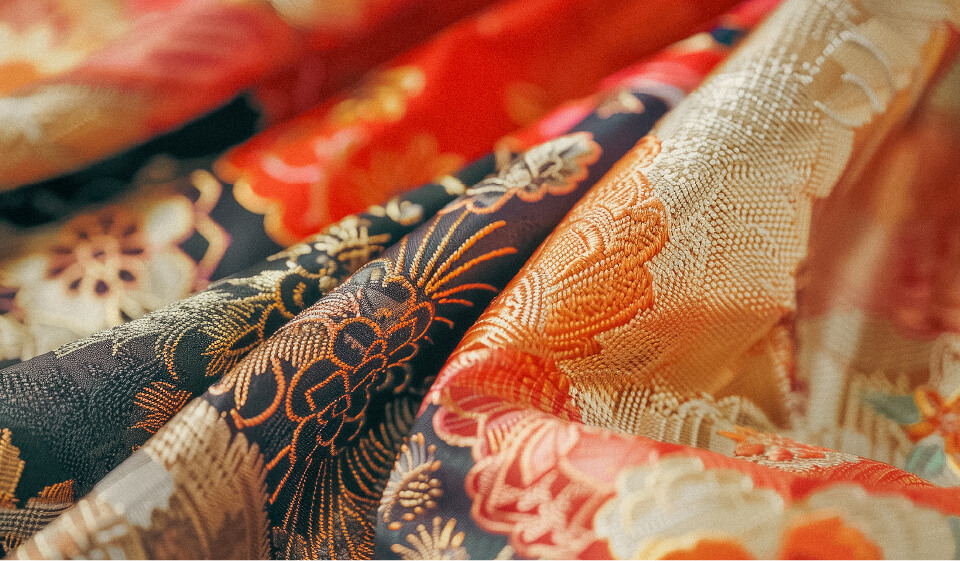 振袖、訪問着、留袖、白無垢、色打掛、浴衣など、さまざまな種類の着物を買い受けしています。また、帯や帯留めなど、和装小物も取り扱っています。