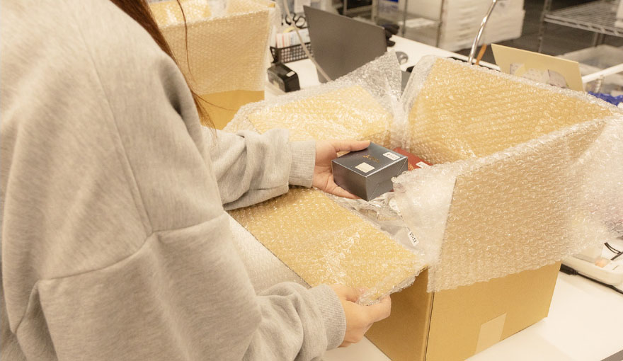 商品の入荷情報・在庫情報・出荷情報を確認しながらデータベースで管理します。担当する商品はブランド品、貴金属、切手などジャンル別に分かれており、出荷に向けた梱包作業も行います。